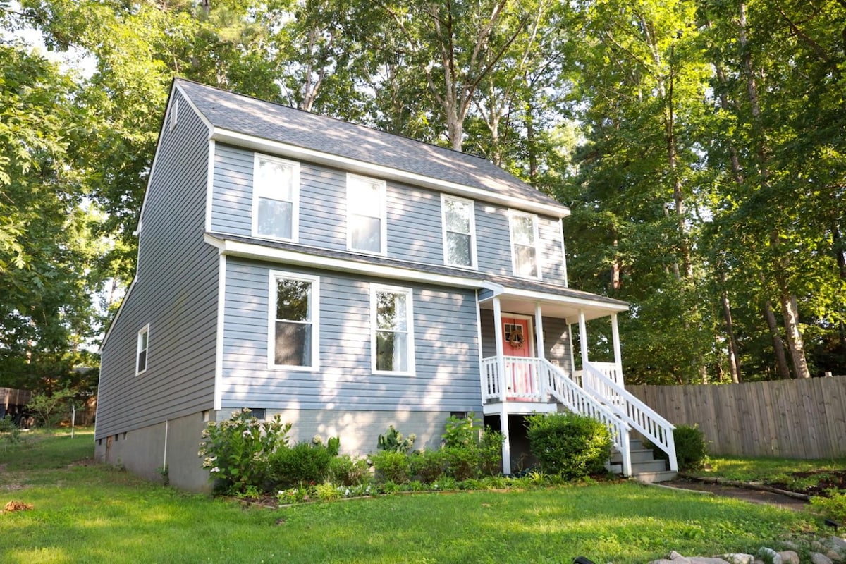 Troba el millor d'ambdós mons aquí, una escapada tranquil·la a només 12 minuts del centre, Carytown, Scott 's Addition, el VMFA i molt més. Gaudeix del riu James fent tubing, caiac, ràfting o natació, senderisme, restaurants premiats, tot a 5 minuts en cotxe. La nostra casa inclou equipament i serveis com una banyera d'hidromassatge per a 8 persones, un moll amb un estany amb unes vistes precioses, una foguera a l'aire lliure, un pati, un bany d'olis essencials i te/cafè de franc! La nostra cuina està equipada amb estris de cuina, espècies i plats. STR-135430-2024 és