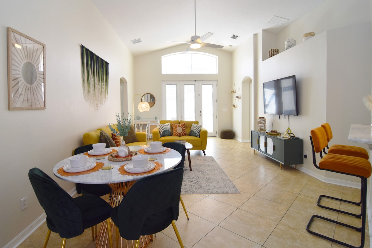 Stylish, family-friendly four-bedroom townhome + private pool in exclusive Champions Gate Resort. Enjoy ALL-ACCESS amenities including two Clubhouses with water parks, lazy river, gym, tropical bars & restaurants, plus NEW pickleball courts, PGA golf course, tennis courts, and sports complex. Only 8 miles from Disney World & 11 miles from Universal Studios, ideally located for Orlando’s best attractions! Sleeps 10, with fully equipped kitchen and laundry. Perfect getaway for families & groups!