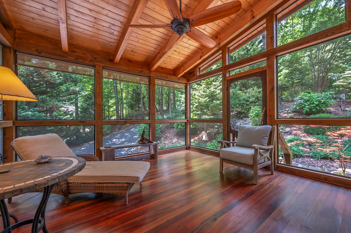 Et donem la benvinguda a la nostra encantadora caseta de muntanya. Situat al cor de les impressionants muntanyes, a prop del llac Lure, Chimney Rock i Hendersonville. A l'interior, trobaràs un espai acollidor i acollidor que combina l'encant rústic amb les comoditats modernes. Els grans finestrals inunden la cabana amb llum natural i ofereixen unes vistes impressionants del bosc i les muntanyes dels voltants. Hi ha moltes aventures a l'aire lliure i botigues boniques per passar el dia gaudint. La teva escapada a la muntanya inoblidable t'espera!