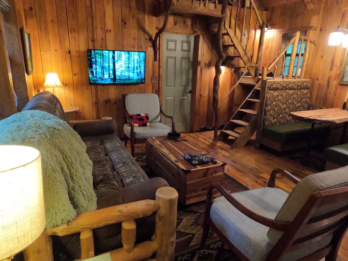 Busques aventura? Un descans tranquil? Ho tenim tot a Copperhill! Aquesta caseta té capacitat per a 2 hostes còmodament, per la qual cosa és l'escapada ideal per a parelles. L'encantador interior ofereix un ambient rústic gràcies a la decoració de fusta i disposa d'un sofà a la sala d'estar perquè els hostes puguin relaxar-se i gaudir d'una mica de temps junts davant del televisor, que està configurat amb televisors en línia Roku. Utilitza The Lodge també (taules de ping-pong i billar, sistema de juke box, anells de foc i molt més). A 4 milles de ràfting! Banyera d'hidromassatge també!