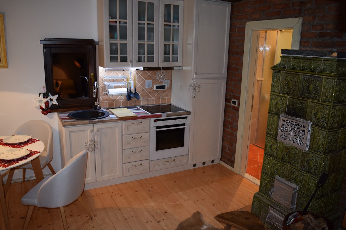 La casa rural està construïda amb materials naturals, seguint principis sostenibles, i forma part d'una llar rural tradicional, a prop de menjar casolà i animals de granja. No hi ha cuina, però oferim àpats del nostre menú que pots triar segons les teves necessitats. Disposa de televisor, wifi i un escriptori gran per a dos. Un plaer especial és descansar a la banyera integrada amb vista al bosc.