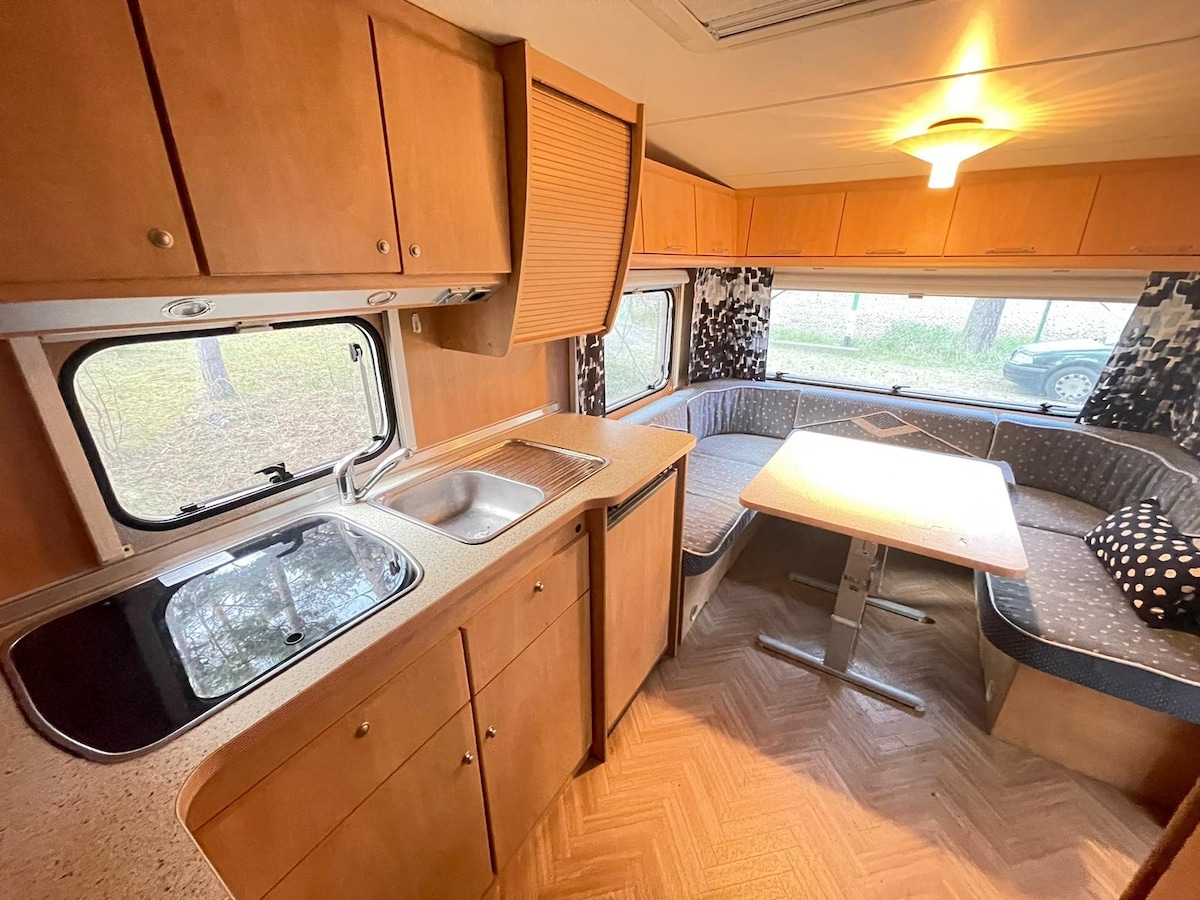 Ofereixo una caravana espaiosa i còmoda en lloguer, perfecta per a una escapada de vacances al costat del mar. La caravana es troba al pintoresc càmping Kashubian de Dębki, a només uns minuts a peu de la platja. Dades de l'anunci: - 4 dormitoris - Cuina totalment equipada (nevera, fogons, plats, vaixella). - Vàter - Un lloc per relaxar-se al vestíbul o a l'exterior (taula, cadires). - S'admeten animals de companyia. Reserva la teva estada aquí i relaxa't a la natura.