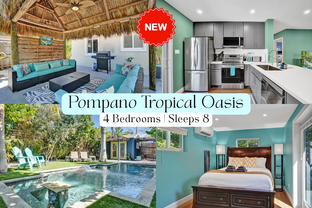 CASA DAVANT DEL MAR AMB PISCINA CLIMATITZADA I FONT, CABANA TIKI AMB BAR, CAIACS I BICICLETES! DIRECTE A LA COSTA AMB ACABATS DE LUXE I BELLAMENT MOBLATS AL COR DE LA PLATJA DE POMPANO. AQUEST ALLOTJAMENT INCLOU 3 DORMITORIS I 2 BANYS I UNA PISCINA CLIMATITZADA. A PROP DE LA PLATJA, ACTIVITATS DEPORTS AQUÀTICS, RESTAURANTS ELEGANTS I COMPRES DE LUXE. EL TEU PATI IDEAL DE FLORIDA PER FER UNA BARBACOA I RELAXAR-SE A LES GANDULES MENTRE VISTES A L'AIGUA. 2 CAIACS INCLOSOS!