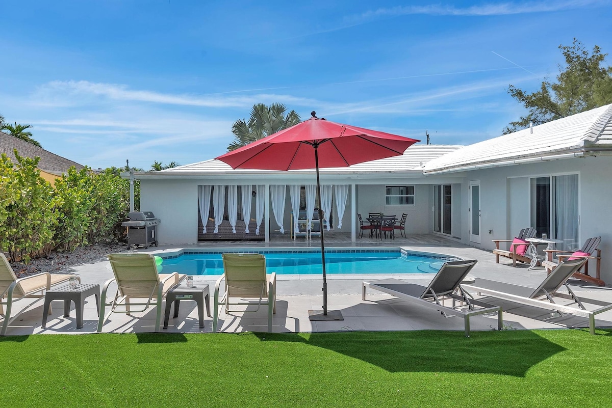 🌴Welcome to your canal-front retreat! Have some fun in the pool with the family, or enjoy some drinks in the hot tub and built in new wet bar. 🍹Our outdoor seating area has a TV 📺—perfect to watch your favorite Team play or for family movie night. 🍔🔥Relax under the gazebo with BBQ area, 💪🏋️♀️or work out in the outdoor gym. 🛌Comfortable bedrooms and two renovated bathrooms ensure a great stay. Just minutes driving from Pompano Beach’s beautiful shores and dining! 🏖️