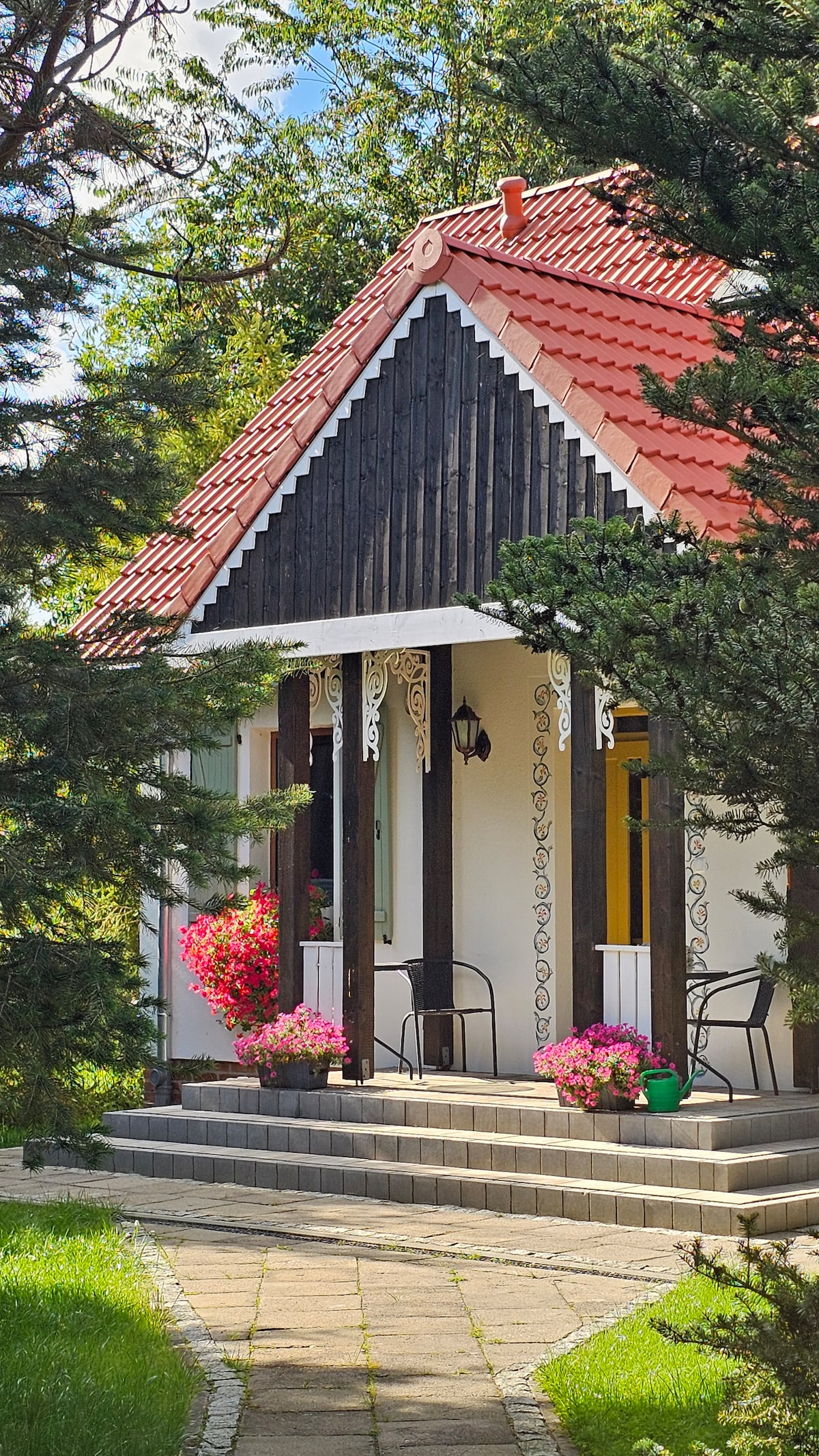 Una casa rural d'estil caseta en un jardí tancat, gran i ple d'arbres. Gairebé 1000 m2 de vegetació fa que sigui totalment privat. La zona és tranquil·la. Tres llacs grans i bonics a 500-700 m Els hostes poden comptar amb un autèntic descans de l'enrenou, el foc a la llar de foc, escoltar el so dels arbres, les granotes presumides i el cant dels ocells. Aquí podràs recuperar l'alè en un lloc segur al bell mig de la natura, al cor de la Pomerània de Kashubia.