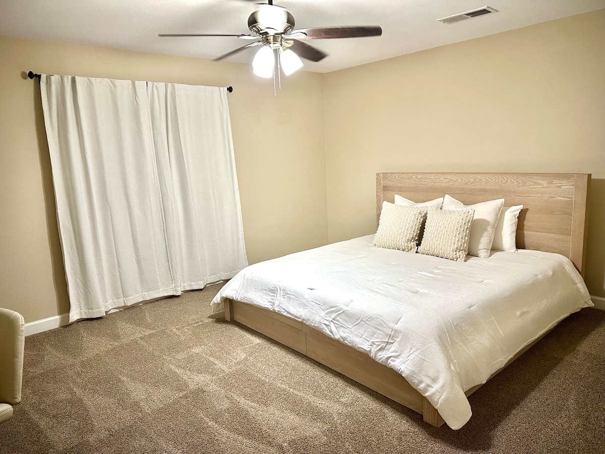 Aquest allotjament de 4 dormitoris i 2 banys no et decebrà! Preciosa decoració moderna amb una taula de menjador amb capacitat per a 8 persones per gaudir d'un sopar elegant!! 3 llits king i un llit queen amb matalassos meravellosos per gaudir del millor son perquè sigui la teva llar lluny de casa. Tots els llums tenen endolls USB i una cistella de regal perquè puguis utilitzar coses que potser hagis deixat a casa. Hi ha molt d'aparcament a l'allotjament i a l'allotjament hi ha un garatge. Televisors a totes les habitacions amb cable i internet sense fils. Cafetera Keurig per començar el dia!!