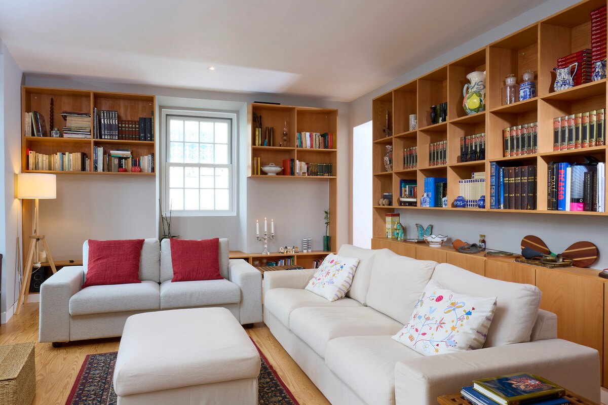 Com el seu nom indica, abans era una biblioteca privada molt apreciada. Una habitació de doble aspecte a la cantonada amb vistes a l'est i al sud, amb l'oceà Atlàntic visible des de les dues direccions. Els madrugadors seran recompensats amb espectaculars sortides de sol i vistes al mar. T'espera un llit king size de 180 cm (6 peus) d'amplada, amb un matalàs suntuós fet amb material natural i roba de llit de cotó de luxe. L'habitació té sostres alts típics de les grans cases del segle XIX. + Vistes al mar + vistes al camp