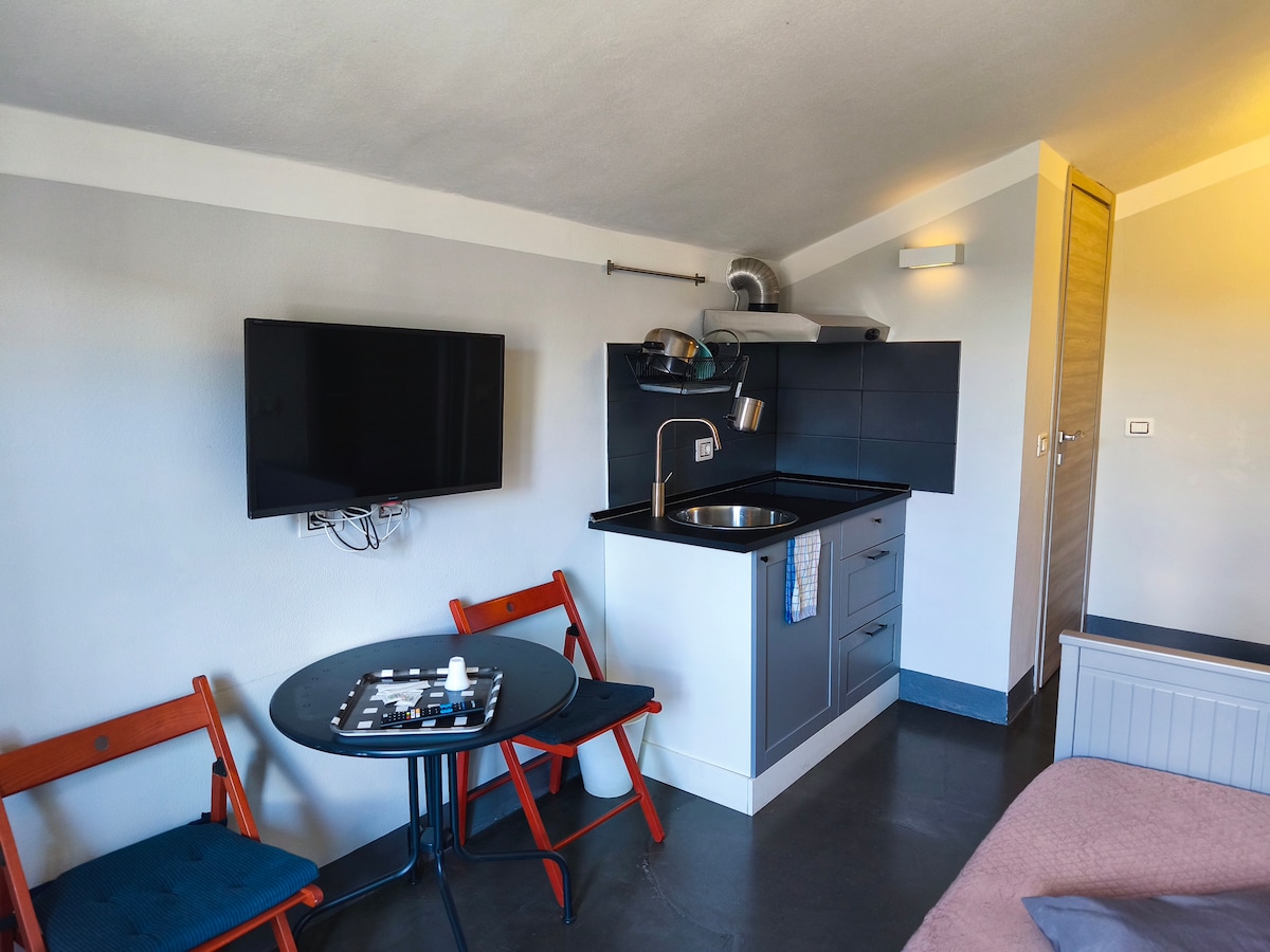 Una habitació espaiosa amb bany privat, cuina, terrassa, aire condicionat i wifi, moblada amb un llit king size i un sofà llit.