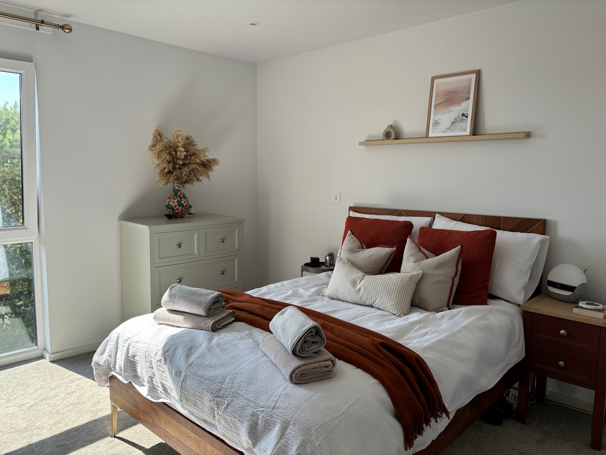 Pis de luxe apte per a famílies en una ubicació excepcional amb tot a la porta de casa! En un carrer tranquil en l'exclusiu poble de Canford Cliffs, a pocs minuts dels millors restaurants, fleca/delicatessen, 2 gastropubs i Tesco. A 5 minuts a peu del bosc panoràmic fins a la impressionant platja premiada de Sandbanks i del parc infantil Pirate. Vacances familiars de luxe ideals amb la ubicació perfecta per aparcar el cotxe i gaudir de la platja, els esports aquàtics i totes les vacances a peu. Aparcament gratuït i sense despeses de neteja d'Airbnb!