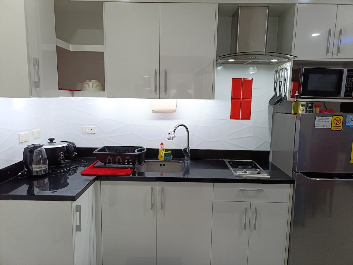 Angelic Premier Residences està prou a prop de SM, Korea Town, restaurants i bars, però prou lluny com per no ser massa sorollós. L'edifici té gimnàs, piscina al terrat que està oberta les 24 hores i un bar esportiu amb taula de billar. Hi ha un aparcament comú davant del pis que funciona per ordre d'arribada i un altre aparcament addicional a l'altra banda del carrer. Aquest és un apartament d'un dormitori totalment equipat amb fàcil accés, 2 televisors amb Netflix, internet de fibra òptica de 200 Mbps, 1 llit de matrimoni, un llit individual plegable i un sofà còmode!