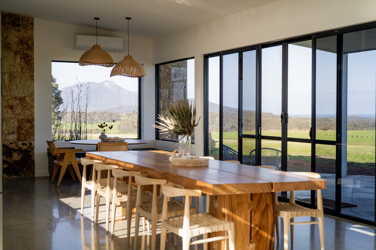 Desperta't amb el cant dels ocells, l'aire fresc de la muntanya i Bluff Knoll entre els arbres. La Mountain View Cottage és un allotjament familiar tranquil al costat del Parc Nacional de Porongurup, on l'accés privat al parc adjacent i als senders per fer-hi caminades comença just a la porta principal. Passa els dies recorrent senders forestals, observant cangurs i aus, nedant a la presa, jugant sota el cel immens o, simplement, gaudint de la tranquil·litat. Després, torna a casa i gaudeix de les vistes a la muntanya, un foc càlid i una caseta on et sentiràs com a casa.