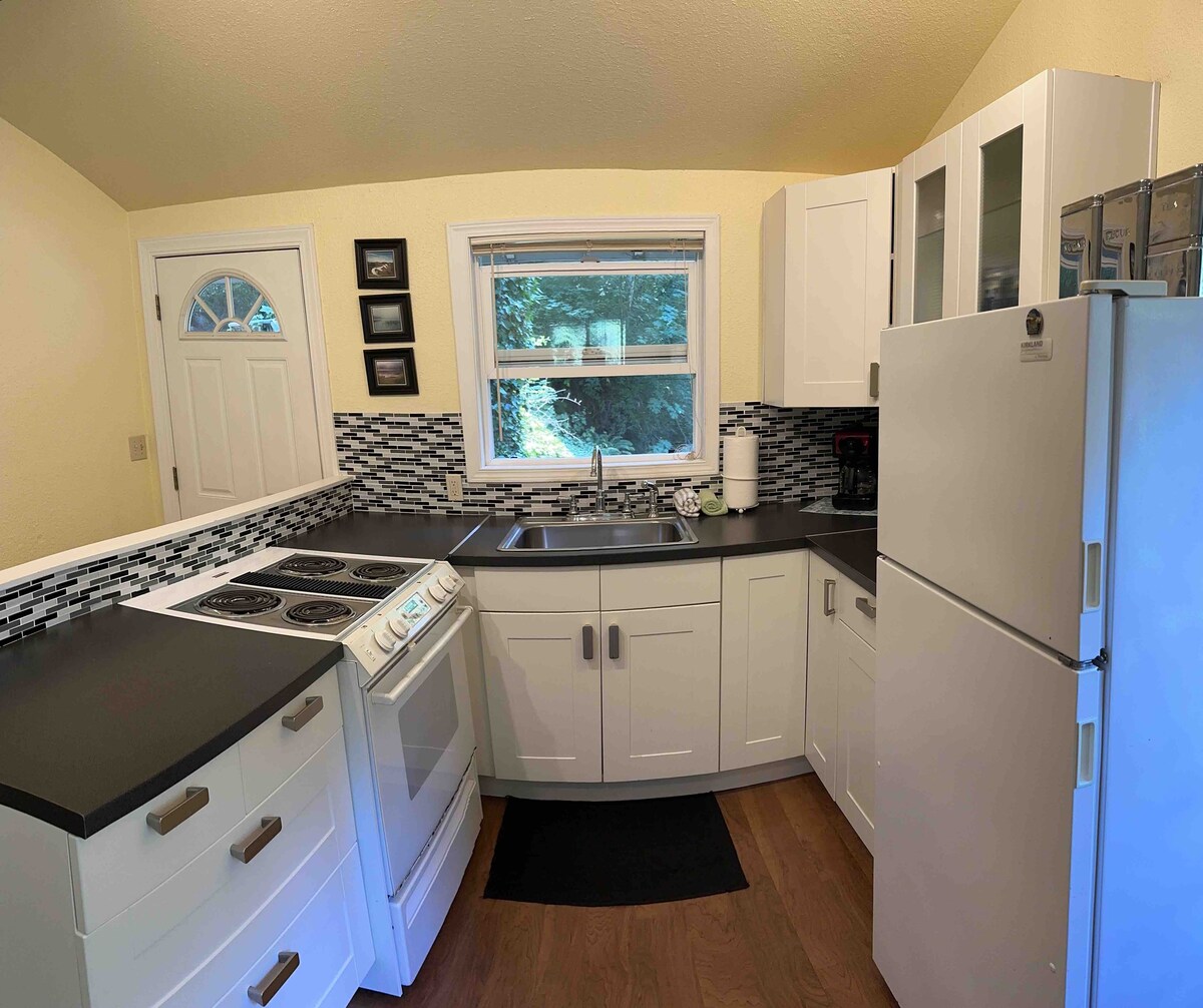 Còmoda casa rural d'estil estudi de 400 peus quadrats sense esglaons amb concepte obert. A 5 hectàrees entre Sequim i Port Angeles, els hostes tenen la ubicació perfecta per estar a prop del Parc Nacional Olímpic, excursions i atraccions turístiques. Aquest acollidor allotjament lluny de casa disposa d'una dutxa a peu, cuina completa (equipada amb elements bàsics), aire condicionat i calefacció, pati exterior, llit queen size, sofà llit doble, llar de foc elèctrica, televisor i wifi Starlink d'alta velocitat. Casa rural construïda amb material reutilitzat majoritàriament!