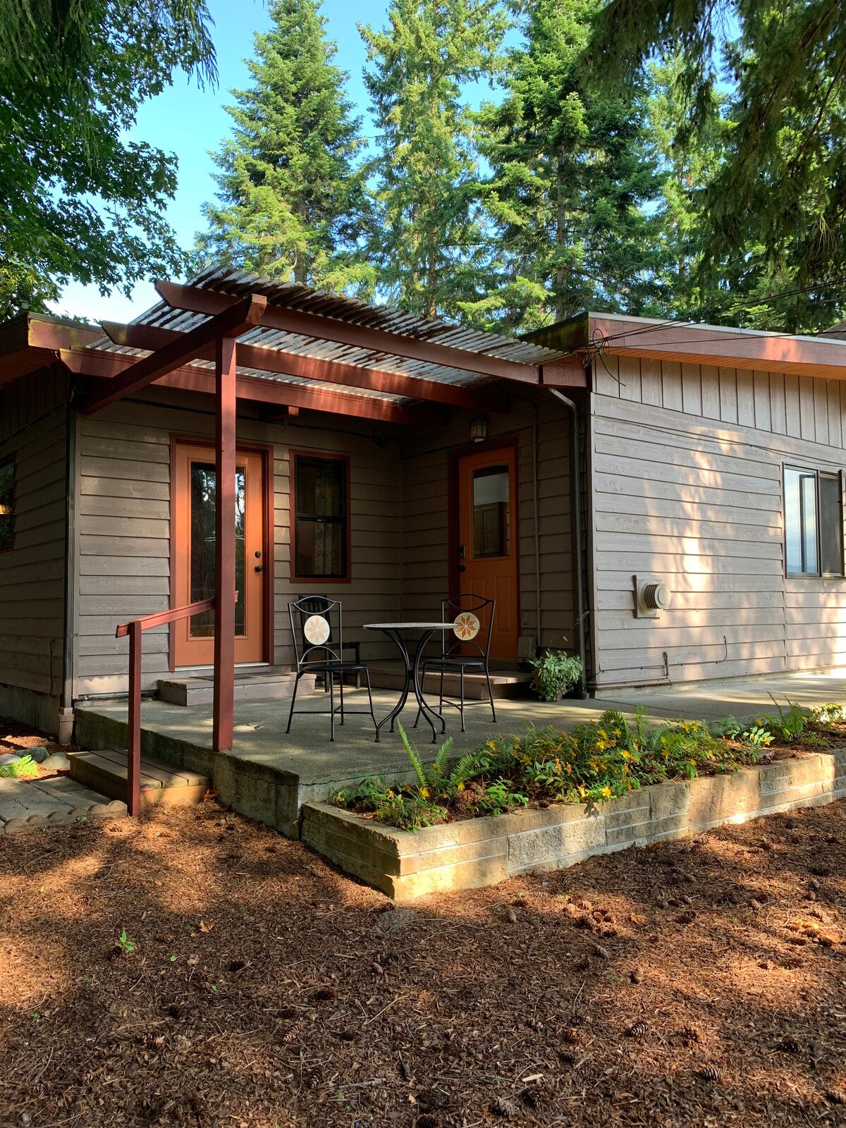 Acollidora suite d'hostes a Adelma Beach situada en un bosc privat de cedres i granotes. Vista panoràmica de Discovery Bay i Olympic Mountains des de les habitacions i el porxo cobert. Sala d'estar amb llar de foc, dormitori i bany complet. Escalfador de propà. Cuina americana amb cuina elèctrica, forn torrador i mininevera. Dues entrades privades. Entrada sense claus. Ruta ciclista Larry Scott a tocar de pedra. La pau i la solitud t'esperen!