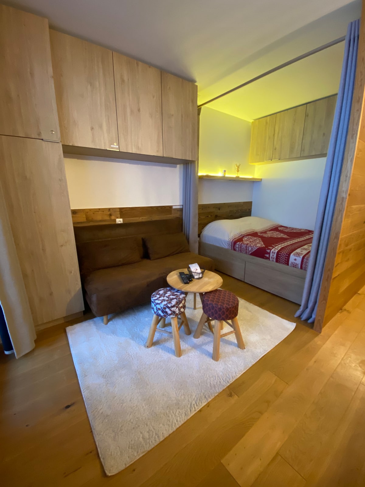 Estudi a la planta superior de la residència Le DATCHA a l'entrada del complex hoteler. Renovació novembre 2022. Vista del complex turístic, les pistes i la vall de Morzine. Sortida en esquís. Llençols/tovalloles (només a l'hivern) i neteja inclosos en el lloguer....Tot inclòs. Cuina equipada 2 televisors WIFI gratuït a 2 passos de botigues, restaurants, botiga de lloguer d'equips d'esquí, centre nàutic Aquariaz, escola d'esquí, Aparcaments coberts a prop Caixa fora de la clau fora de l'apartament.