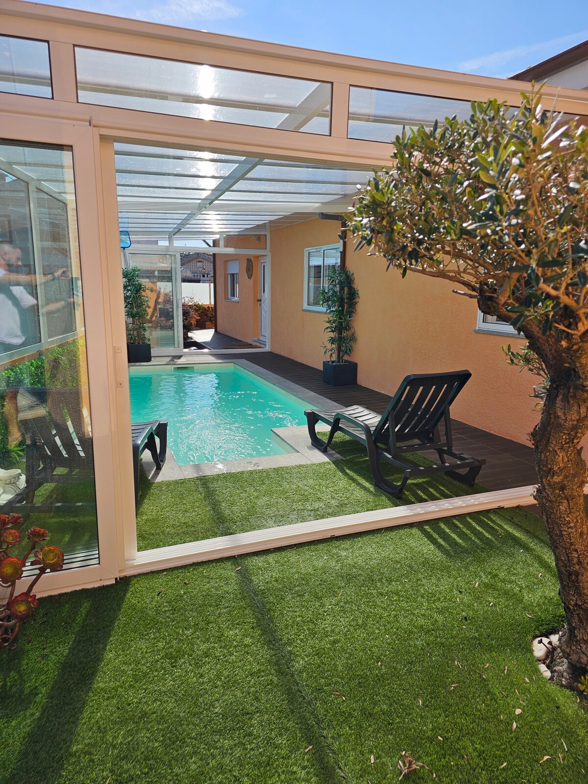 Gaudeix d'un refugi de primera a Vila Nova de Gaia, on els grans finestrals deixen entrar la natura i la piscina interior i climatitzada et convida a relaxar-te. Amb una sala d'estar espaiosa, una cuina moderna i un balcó assolellat, aquest apartament ofereix relaxació i estil per a famílies o amics que busquen comoditat i un tast de la vida local a Porto.