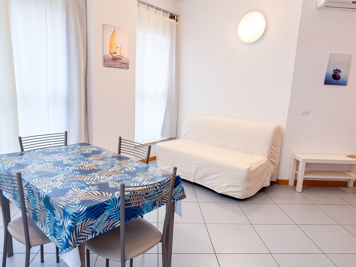 Nou apartament a peu de platja apte per a un màxim de 4 persones amb entrada privada a un pati privat i un aparcament privat (màx. 4,80 m x alçada màx. 1,90 m). Compost per cuina i sala d'estar amb sofà llit, dormitori doble amb llit de matrimoni, bany i pati privat. Totalment climatitzat i insonoritzat. Una zona envejable i tranquil·la adequada per a parelles i famílies, a 400 metres del centre. Pineta, carril bici, prats, jocs de platja i tots els serveis a poca distància a peu. No s'admeten animals de companyia