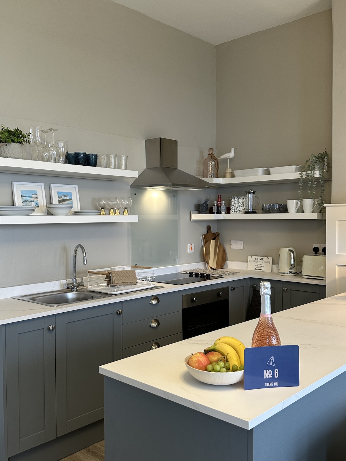 Pis en planta baixa d'una casa unifamiliar victoriana. Les característiques originals es mantenen, però amb totes les comoditats. Situat a la zona de la península de Portrush amb vistes ininterrompudes al mar i a la ciutat. Ideal per a parelles i famílies. A dos minuts a peu del port, on trobaràs bars, restaurants i parcs infantils populars. A deu minuts a peu de les estacions de tren i autobús. A 20 minuts a peu del Royal Portrush Golf Club. Allotjament aprovat per la junta de turisme d'Irlanda del Nord. Aparcament gratuït.