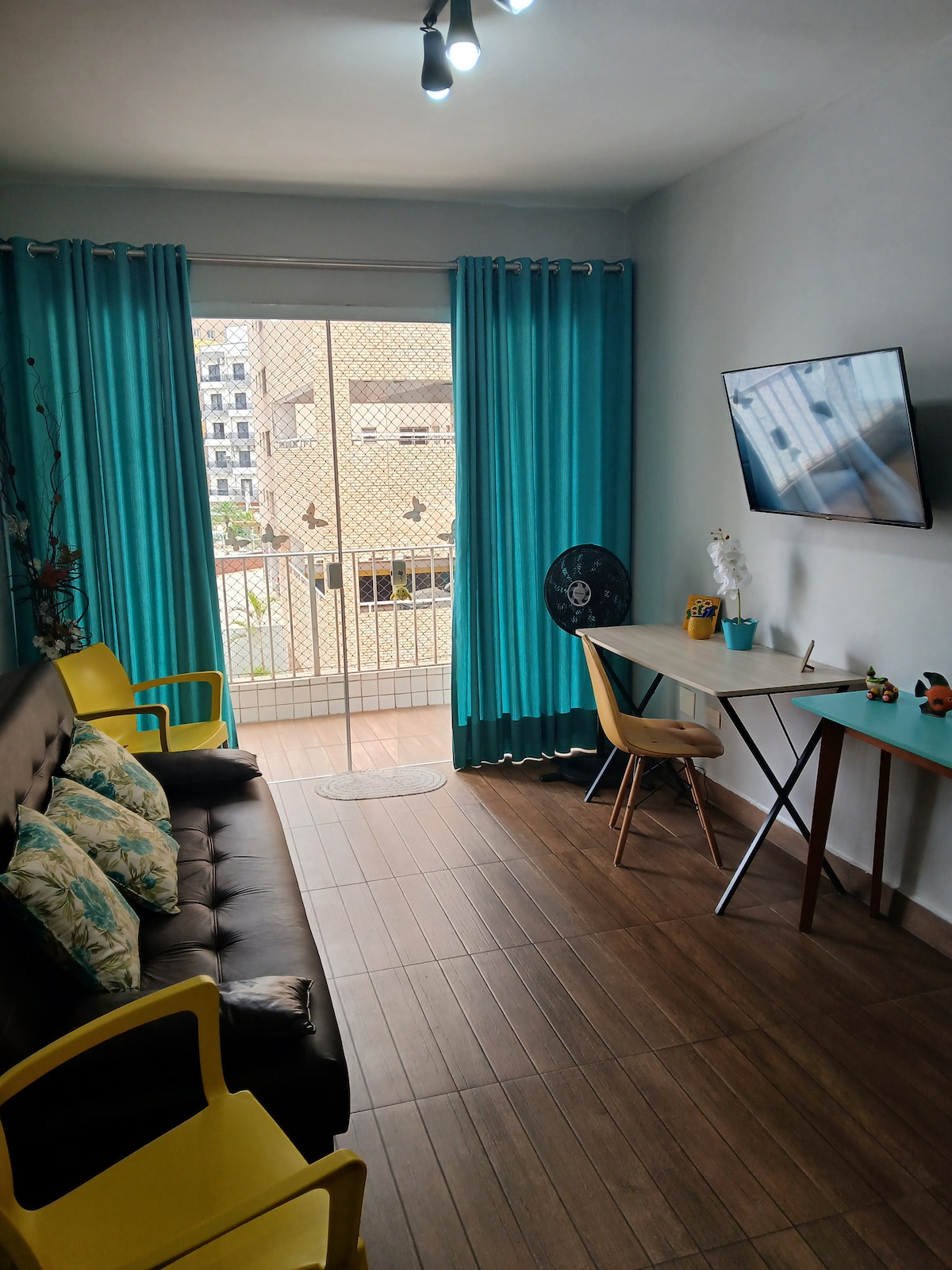 Apartamento de lateral sol da tarde no 8º andar, com linda vista para o mar e serra da cidade a perder de vista, muito aconchegante, dois quartos sendo um deles suíte, mesa de jantar para 4 pessoas que pode se estender para seis, sala com Smart TV, cozinha completa, banheiros com box, sacada com churrasqueira e Wi-Fi disponível em todo ambiente. Pé na areia basta descer do apartamento e atravessar a rua, garagem coberta disponível para 1 vaga incluso.