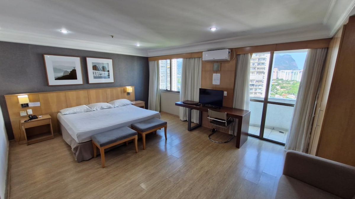 Lloc deliciós amb molta vegetació, balcó amb vistes, hamaca i sol al matí, sala d'estar integrada (sofà llit, TV, split), dormitori amb llit de matrimoni, armari i caixa forta. Piscina climatitzada, restaurant i aparcament a l'edifici. 📍 Ubicació perfecta: zona tranquil·la, a prop de mercats, centres comercials i platges de Barra. Accés fàcil en cotxe, metro, BRT, Uber, taxi aquàtic o bicicleta! Descobreix per què Tim Maia va immortalitzar la frase: 🎶 «De Leme a Pontal, no hi ha res com això!»
