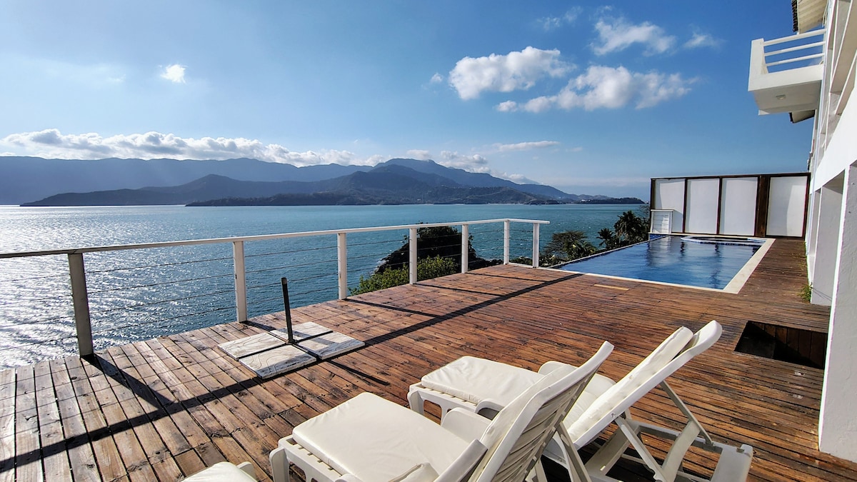 Una antiga casa en vaixell, construïda als anys 50 i que pertanyia a l'antic hotel Belvedere, situat en una petita badia anomenada Sepituba. En aquest hotel, el meu pare va passar la seva joventut passejant en canoa. L'allotjament té una energia deliciosa per descansar i contemplar les impressionants vistes del mar i d'Ilhabela, que està davant nostre. És un paradís únic! Namaste Acceptem 1 animal de companyia per estada (fins a 20 kg).
