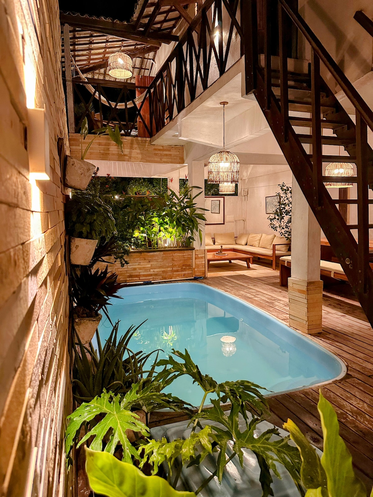 @ankhjeri Casa privada que uneix comoditat, naturalesa i exclusivitat. Davant del mar i al costat de la Serra do Serrote. Amb 4 suites (3 llits dobles + 2 llits dobles convertibles en individuals). Disposa d'una habitació amb una cortina de vidre i un terrat increïble amb vistes al mar. Tots els allotjaments tenen aire condicionat, wifi, televisió per cable, Netflix i una caixa forta. Zona comuna: piscina, jardí i barbacoa compartida. Situat a només 2 illes del centre del poble