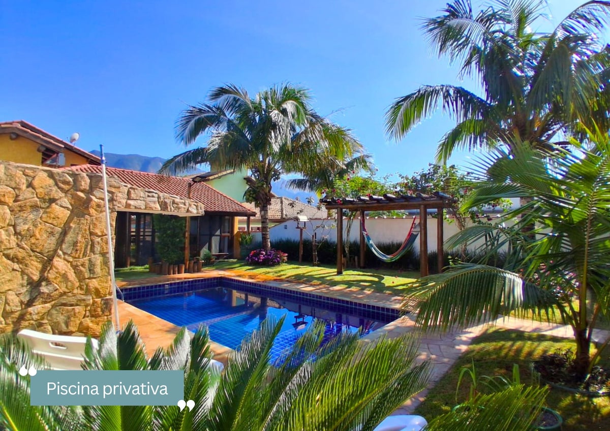 Aquest bungalou es troba al cor de la Selva Atlàntica, dins d'una comunitat tancada. És a prop del mar i té un rierol d'aigües cristal·lines al pati del darrere. La propietat també té accés a piscines naturals i petites platges. Per a aquells que els agrada la natura i la comoditat. Perfecte per descansar i recarregar energia. L'allotjament té una terrassa amb cuina exterior, bany privat, minibar i SmartTV amb molta transmissió, Alexa i aire condicionat. S'admeten animals de companyia!