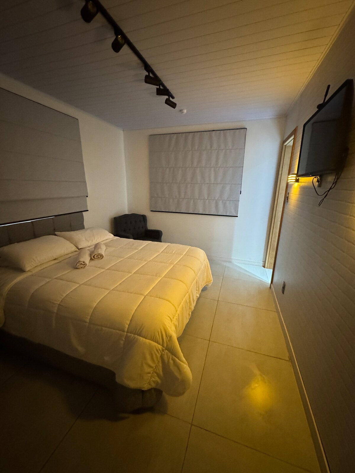 Apartament Lounge, situat a 5 minuts de la platja de Brava i a 10 minuts de Balneário Camboriú. La ubicació és perfecta. A només 5 blocs de la platja. Tanca totes les festes i restaurants. Apartament amb normalitat, piscina, gimnàs, vapor i 5 barbacoes. L'apartament disposa de jacuzzi orientat a la muntanya amb hidroelèctric i cromoteràpia. Ideal per relaxar-se o passar una estona romàntica. Disposa de televisor intel·ligent de 58 'a la sala d'estar i 40' al dormitori. Cuina completa. La màquina s'asseca i s'asseca. T'encantarà aquest lloc.