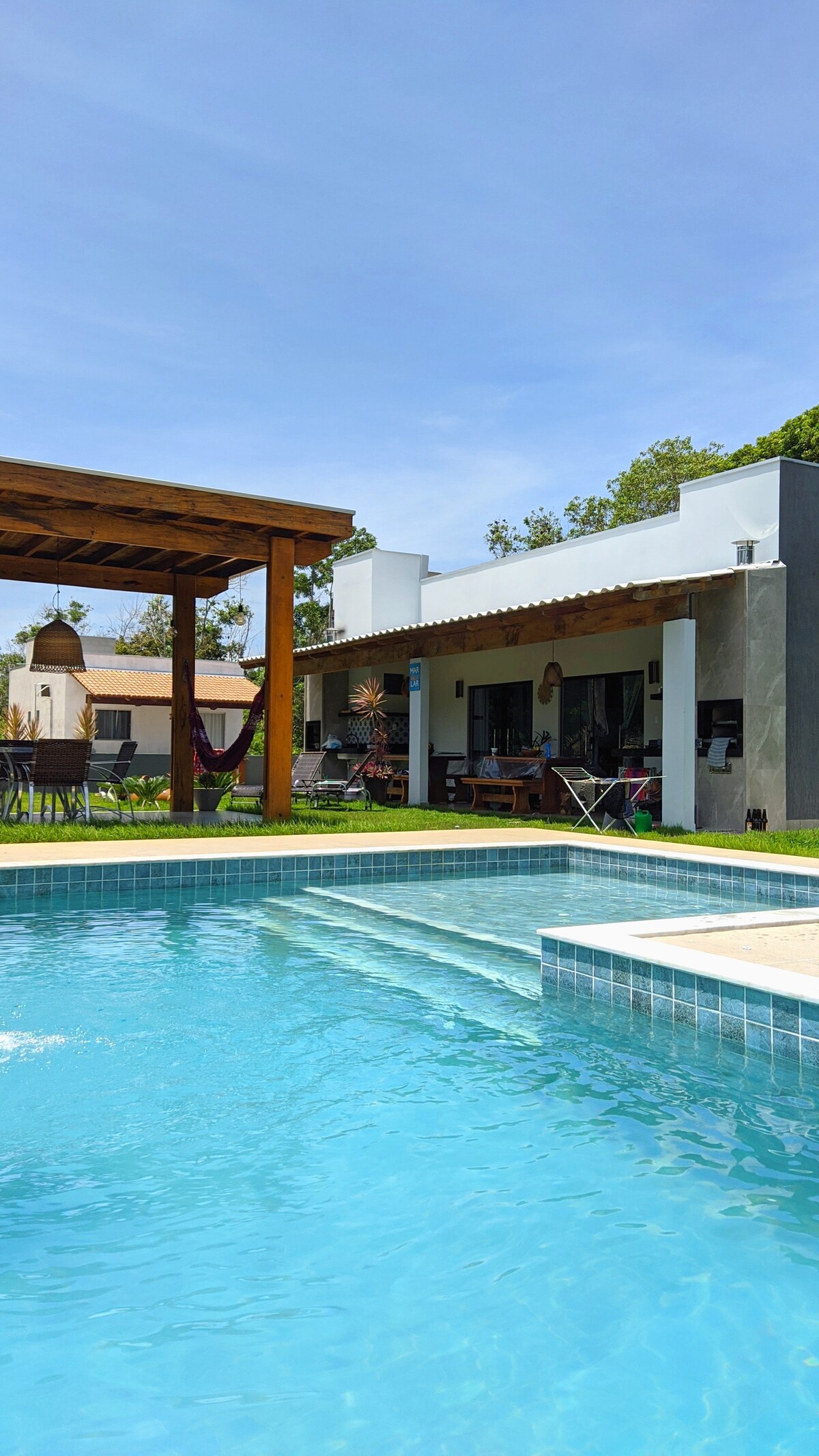 Relaxa't i diverteix-te amb tota la família en aquest lloc. Mar a 3 minuts de la casa a peu (300 m) i una piscina privada! A diferència d'altres llocs de la regió, aquesta casa ofereix privacitat amb la zona gourmet i la piscina d'ús exclusiu per a tu i els membres de la teva família. El carrer és el millor del condomini, amb accés a la primera passarel·la a la platja, parc infantil amb tirolines i molta tranquil·litat. Les habitacions disposen d'aire condicionat, a més de llits fantàstics (un «king size» i un «queen size»).