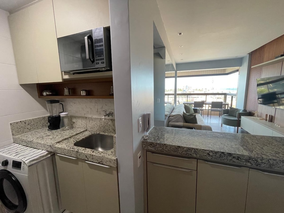 Hi ha un apartament de 2 dormitoris ben decorat amb un bany privat, aire condicionat dividit en tots els entorns controlats individualment i vistes al mar. Té capacitat per a 6 persones (2 llits dobles + 1 sofà llit). Gaudeix dels serveis de l'edifici, com ara la increïble piscina amb VISTES AL MAR al terrat, gimnàs complet amb aire condicionat i sala de spinning, 2 sales de coworking i biblioteca de joguines. Participa en la màgia de Bahia i comença a crear records inoblidables!