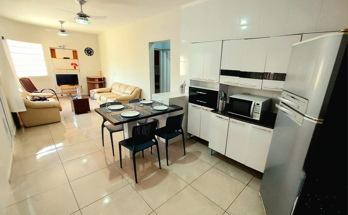Relaxa't amb tota la família en aquest allotjament tranquil, al costat de la natura. Casa senzilla i acollidora, situació privilegiada entre dues platges precioses (Itaguaré i São Lourenço). Casa senzilla amb tots els equipaments i serveis que necessites. Sala d'estar amb televisor intel·ligent i ventilador. Cuina equipada amb tots els estris de cuina... Forn de gas, microones, batedora. Zona gourmet amb barbacoa, rentadora. Pati ampli amb garatge i dutxa exterior. A 5 minuts a peu de la platja.
