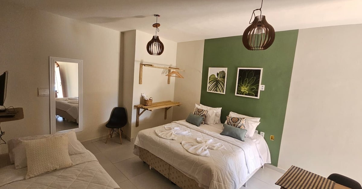 Gaudeix d'una experiència amb estil en aquest espai ben situat. A prop dels principals restaurants, mercats, gimnàs i platja de la ciutat. Al loft tindràs la cuina equipada amb una estufa elèctrica, licuadora, cafetera dolce gusto, minibar 127l, sandvitxera i els estris bàsics. A la sala de televisió intel·ligent, caixa forta i sofà llit. L'habitació on podem despertar fins a 3 hostes amb aire condicionat de 12 000 btus. El bany està equipat amb assecadora i dutxa elèctrica.