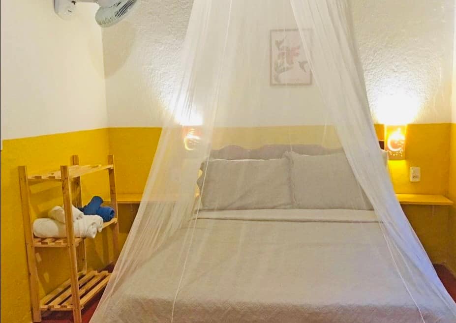 Excelente localização, sem morros. Estamos na rua principal, menos de 10 min do centro e a poucos metros da praia, onde estão os melhores restaurantes e bares. Quarto amplo e perfeito para famílias, possui uma cama de casal e 2 camas de solteiro no mezanino. Oferecemos 2 ar condicionados, wifi, frigobar, microondas, sanduicheira, cafeteira, utensílios básicos, pia, roupa de cama e banho, banheiro privativo, varal e área externa. Ambiente tranquilo, confortável. Garantimos fidelidade às fotos.
