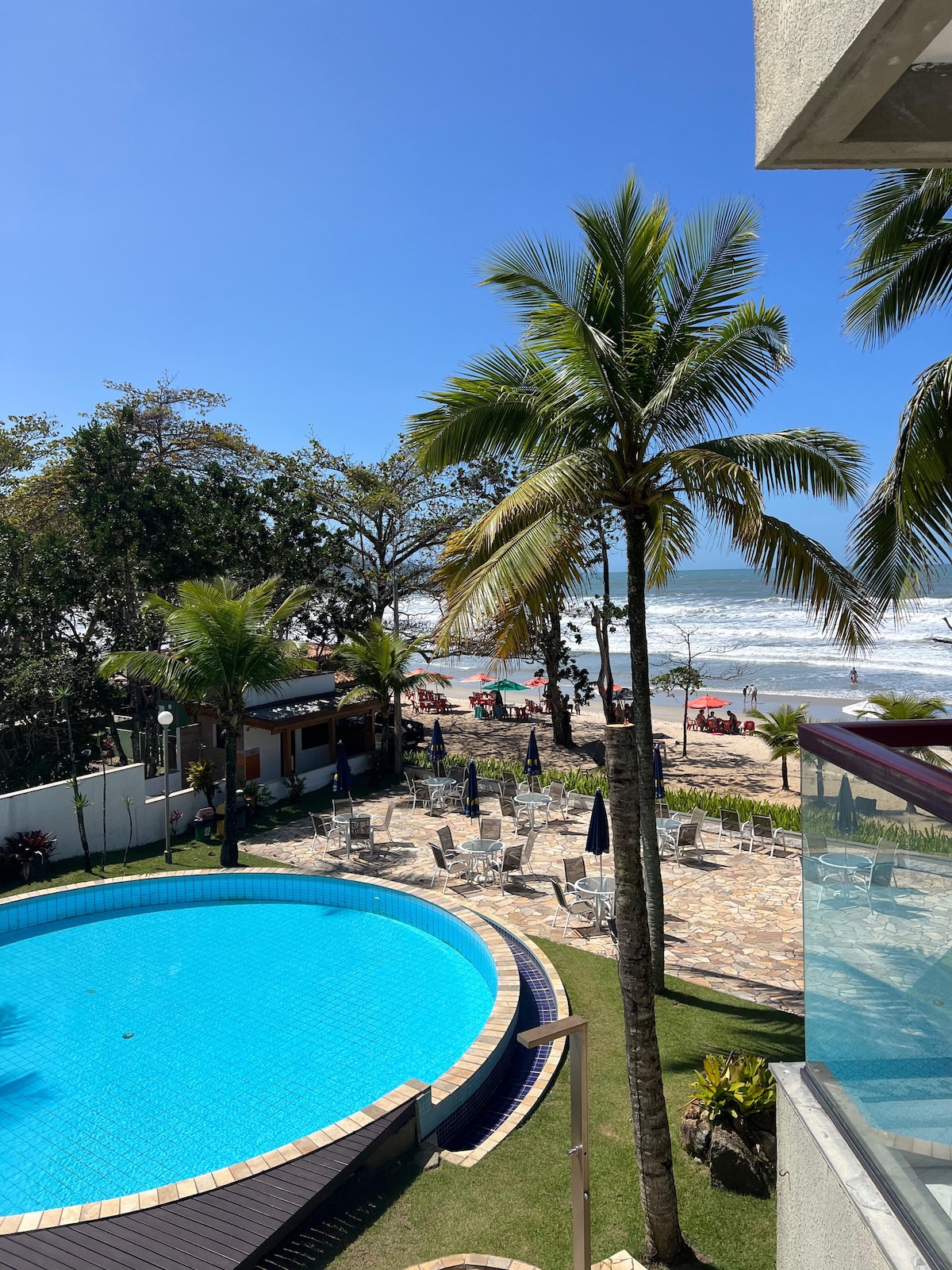 Et donem la benvinguda a la teva escapada a la costa nord de São Paulo! T'oferim una experiència completa de comoditat, estil i connexió amb la natura, amb el mar als teus peus. A menys d'un minut a peu, podràs tocar les aigües de la platja. 📍 Ubicació: a pocs minuts a peu de l'encantadora Blue Lagoon i a només 5 minuts en cotxe d'un supermercat, una farmàcia i botigues de comestibles. Estem a 20 minuts del centre de Caraguatatuba i a 1 hora d'Ilha Bela i São Sebastião.