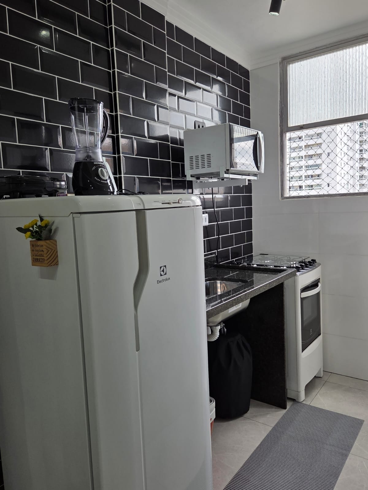 Apartament Lindo situat a la millor regió de São Vicente amb vistes al mar i a peu a la sorra. Oferim una plaça d'aparcament a prop del lloc. A prop de restaurants, bars, farmàcies, supermercats i les principals platges de la ciutat. L'Ape compta amb aire condicionat, wifi de 350 Mb, televisor de 55 polzades amb canals oberts i Netflix, roba de llit completa, un llit còmode i un sofà llit, cuina completa, a més d'una taula de menjador amb una vista apassionant. Et diu si no és un plaer passar-hi una estona?