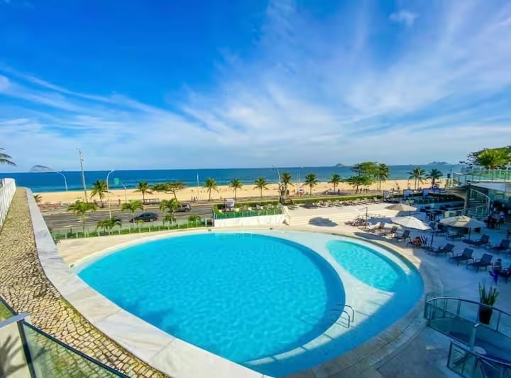 Nosso apartamento fica a 3 minutos a pé da praia. O prédio oferece uma piscina ao ar livre e vista do mar, e está localizado a 500 metros da Praia de Copacabana. A acomodação fica no 14º andar, fazendo com que o espaço fique ainda mais silencioso e aconchegante. O Real Residence oferece sauna, academia, cabeleireiro, lavanderia e o hóspede ainda pode desfrutar de uma refeição no restaurante no local. Lembrando que os serviços extra são pagos à parte. O Pão de Açúcar fica a 2,4 km do apartamento.