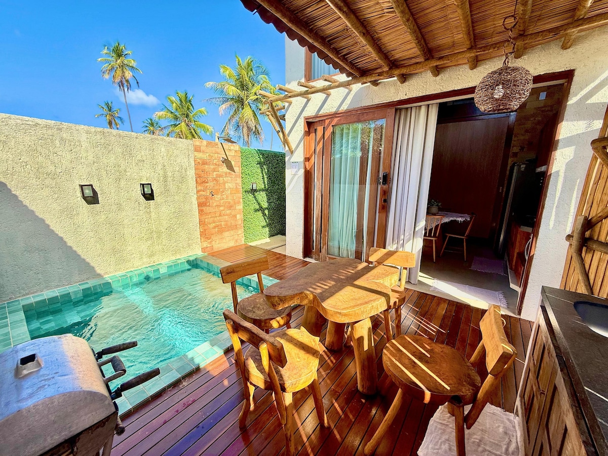 Localizada em condomínio fechado - MILAGRES PÉ NA AREIA- CASAS DE CHARME . Total segurança e tranquilidade . Bangalô de luxo , com piscina privativa. Ideal para lua de mel ou pra quem quer bom gosto e privacidade . Localizado à beira mar da Praia do Toque que é a melhor praia de São Miguel dos Milagres. Vizinho a restaurantes maravilhosos . O jangadeiro vem pega-los em frente a casa para te levar a passeios incríveis as piscinas naturais da região . Oferecemos café da manhã