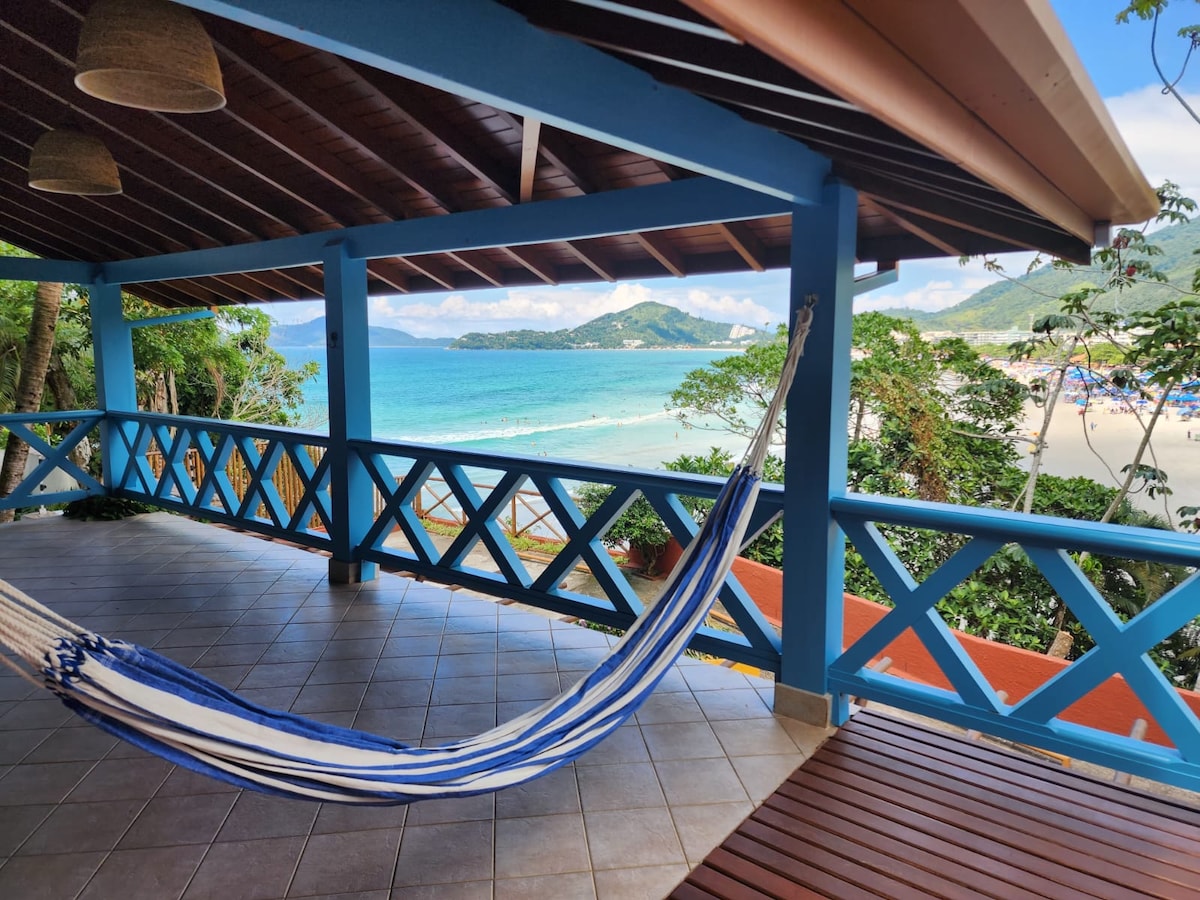 Acollidor xalet amb una vista impressionant de la platja de Vermelha al Centre i a uns 25 minuts a peu de la platja del Cedro, considerada una de les deu platges més boniques del Brasil. El nostre xalet està envoltat per la Selva Atlàntica i ofereix diverses espècies d'ocells, d'esculls i de belles mariposes blaves, que comparteixen aquest tros de paradís amb els nostres hostes. Ens trobem a prop del barri ben estructurat d'Itaguá, on podem trobar supermercats, farmàcies, pastisseries, botigues i restaurants.