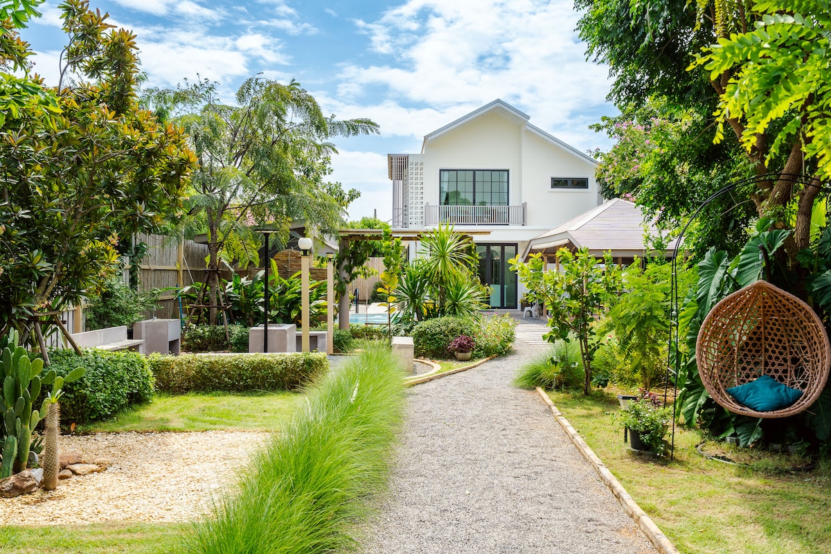 A private pool villa with a Palm Springs vibe. Located at the center of the Khao Tao area. Khao Tao is a coastal village located just south of Hua Hin, Thailand. Not far from the center of Hua Hin but far enough to avoid the bustle of the city. It offers a peaceful retreat for those seeking a more laid-back and intimate experience. Peaceful doesn't mean a lack of services and facilities. There are convenience stores, laundry shops, laundromat, and local restaurants in the neighborhood.