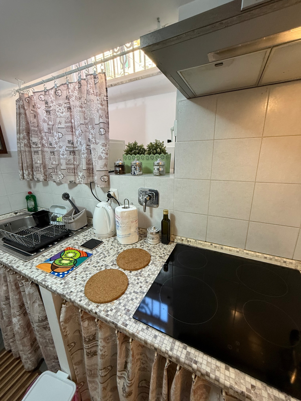 Al casc antic de Roma, al característic districte de Testaccio. Pis recentment reformat per a 6 persones amb wifi, aire condicionat, matalassos ortopèdics còmodes. Consta de dos dormitoris amb televisor intel·ligent de 32 polzades, cadascun amb bany privat, sala d'estar amb televisor intel·ligent de 43 polzades, cuina equipada amb plats d'inducció, rentaplats, forn, bullidor, torradora, cafetera. Una gran terrassa de 30 metres quadrats equipada amb taula, cadires i para-sol