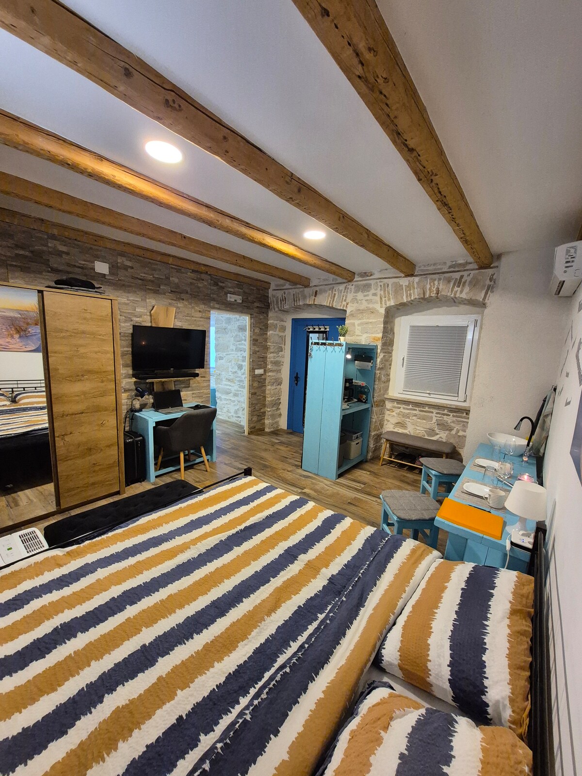 La nostra casa de pedra tradicional istriana està renovada el 2020. Davant de la casa hi trobaràs una gran terrassa coberta que és ideal per relaxar-te i preparar àpats a la graella. Pots gaudir de l'ombra natural sota l'arbre centenari que domina el pati i refrescar-te a la piscina durant els dies més calorosos d'estiu i a la piscina exterior climatitzada durant la temporada càlida. Botiga a 200 m, centre comercial urbà a 2,5 km, platja a 5 km, centre de Pula a 3 km, aeroport a 5 km.