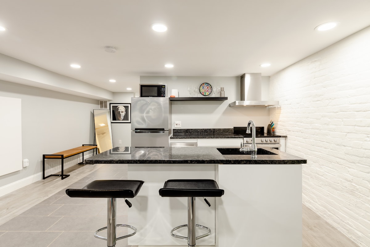 Ubicada al cor del barri històric de Capitol Hill, aquesta caseta de carruatge bellament renovada és la base perfecta per a la teva aventura a Washington D. C. La casa està decorada amb mobles i serveis moderns per fer que la teva estada sigui agradable. La cuina està totalment equipada amb electrodomèstics i estris de cuina i el dormitori disposa d'un llit de matrimoni, mentre que el bany té una rentadora i una assecadora completes. A poca distància a peu de restaurants i botigues propers, i a poca distància a peu del metro fan que moure's sigui fàcil!