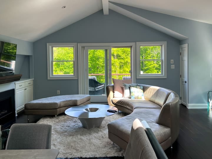 Imagina't una casa de convidats de lloguer amb encant, situada al costat d'un llac tranquil, envoltada de vegetació exuberant. La casa compta amb interiors acollidors amb grans espais que ofereixen una vista impressionant de la natura. A prop hi ha un sender panoràmic que convida els hostes a explorar el pintoresc paisatge, sigui per fer una passejada tranquil·la o una excursió estimulant. (Bucle de 4 milles) Aquest entorn tranquil ofereix una escapada perfecta per relaxar-se i viure aventures a l'aire lliure, per la qual cosa és ideal per als amants de la natura.
