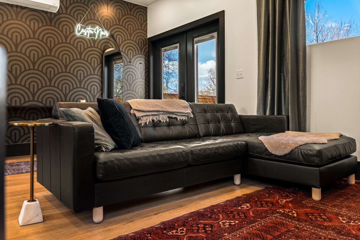 Casita Noir is a private house with high end furnishings, perfect for your next trip. Near Downtown and I25. Walkable to Prospect Lake / Memorial Park (Labor Day Lift Off), Hillside Garden for concerts / weddings, and Switchback Roasters. Custom built construction with thoughtful touches to enhance your stay. You'll wake up well rested in our very comfortable king size bed, make yourself an espresso or tea to enjoy in front of the fireplace, and at the end of the day relax on the patio.