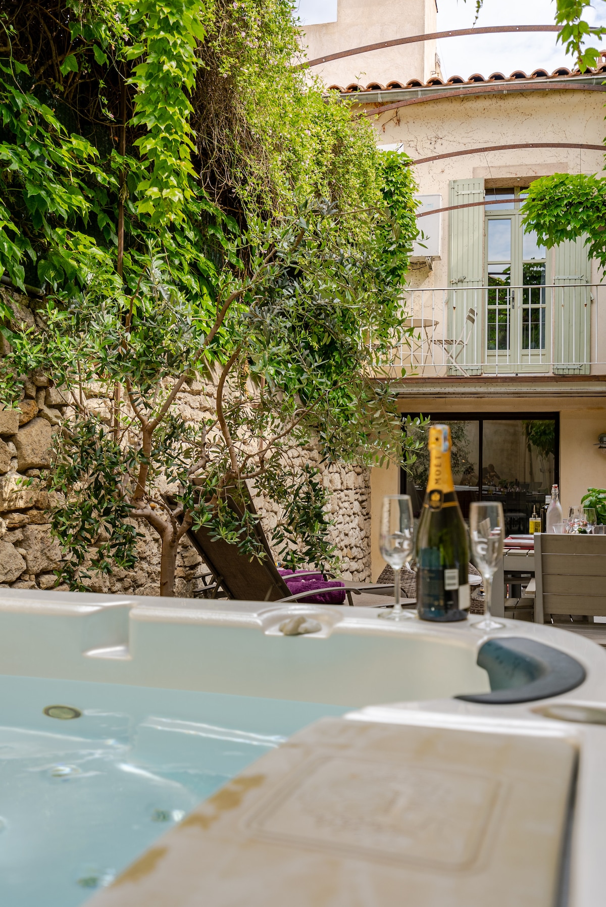 Le Patio Carreterie: Our hidden and lovely 120 sqm air conditioned townhouse is ideally located in the historical district of the city, inside the city's old walls. Its large and secluded patio garden enhanced by a jacuzzi will be the key to your comfort and relaxation during those lovely sunny days or Provençal evenings.
