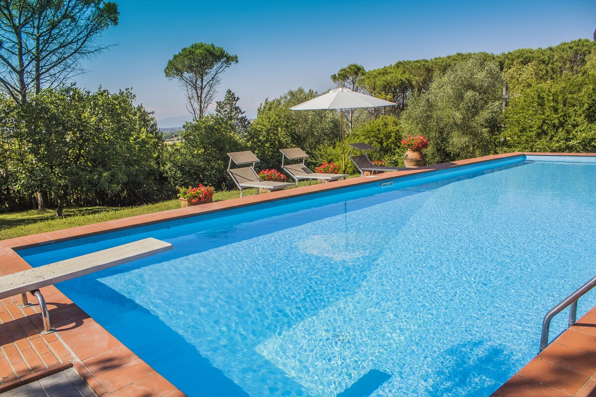 La vil·la (uns 550 m²) es troba en un turó als afores del poble de Capannoli (Pisa). A prop de centres culturals: Pisa (20 minuts) Florència, Lucca, Siena, Volterra (30 minuts), San Gemignano (30 minuts) Lajatico, '' Teatro del Silenzio '' (10 minuts), botigues, supermercat, farmàcia, es troben a poca distància. Molt adequat per a famílies, amb nens o grups. Tenim 5 habitacions dobles i tres banys. Un parc magnífic i una piscina (14X7) completen la propietat.