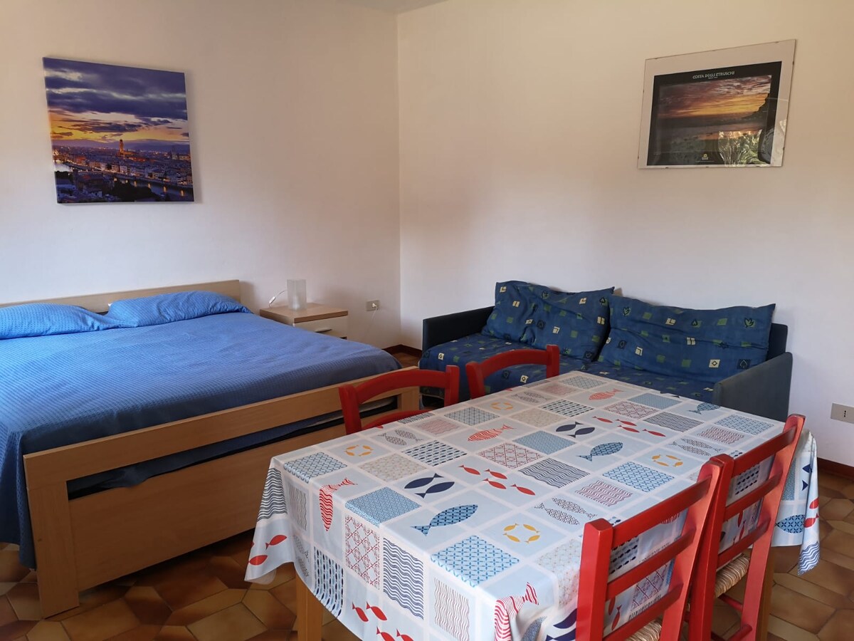 Si busques relaxació, natura verge i diversió per als teus fills, estàs en el lloc adequat. Gliacci Vecchi és una residència a 2,5 km de la platja de Rimigliano i a pocs minuts en cotxe del bell golf de Baratti, un dels més bonics de la Toscana. Els nostres apartaments de dues habitacions, a la planta baixa de les cases unifamiliars, són perfectes per a dos adults i dos nens. Tenen vistes directament al jardí, amb molts jocs per als més petits. Les piscines són a prop, però no pateixis, estan tancades.