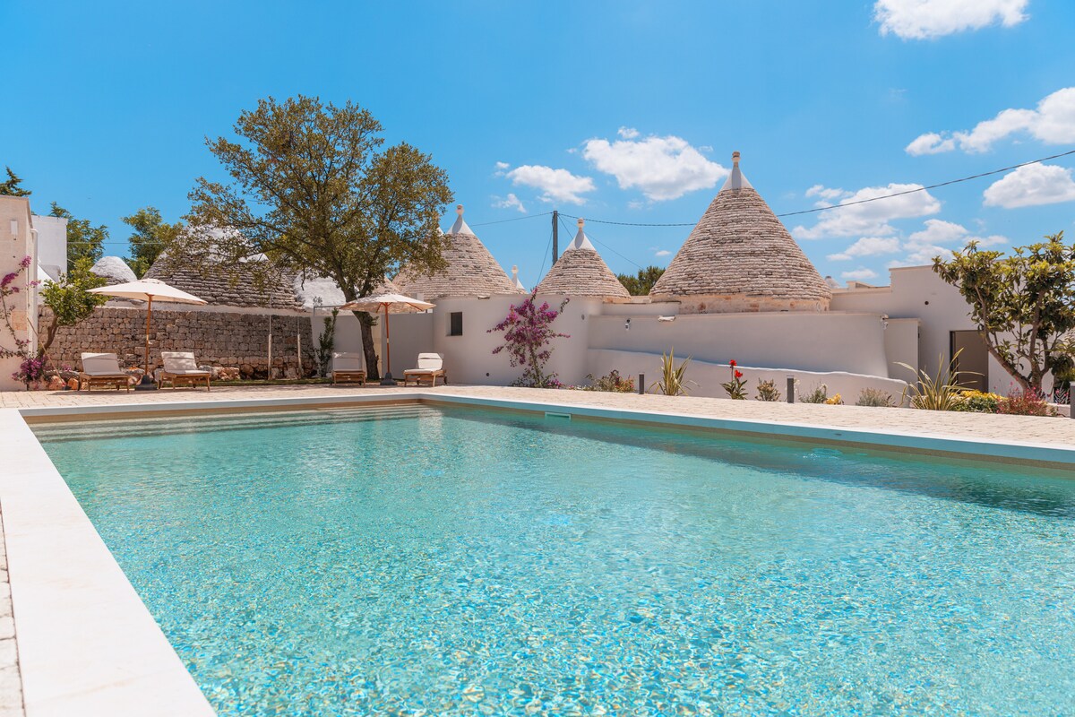 El trullo està moblat per fer-lo còmode. Disposa d'una gran piscina climatitzada (24 °C del 15 d'abril al 15 d'octubre) i d'un jacuzzi per a 5 persones (climatitzat a un màxim de 38 °C per un suplement). Els dormitoris són tranquils. Disposa de calefacció per radiadors i aire condicionat. La cuina petita està totalment equipada i inclou rentaplats. La zona davant del Trullo és completament privada i té una porta amb pany. Hi ha una preciosa terrassa exterior amb taula, cadires i barbacoa. La càrrega de vehicles elèctrics està disponible.