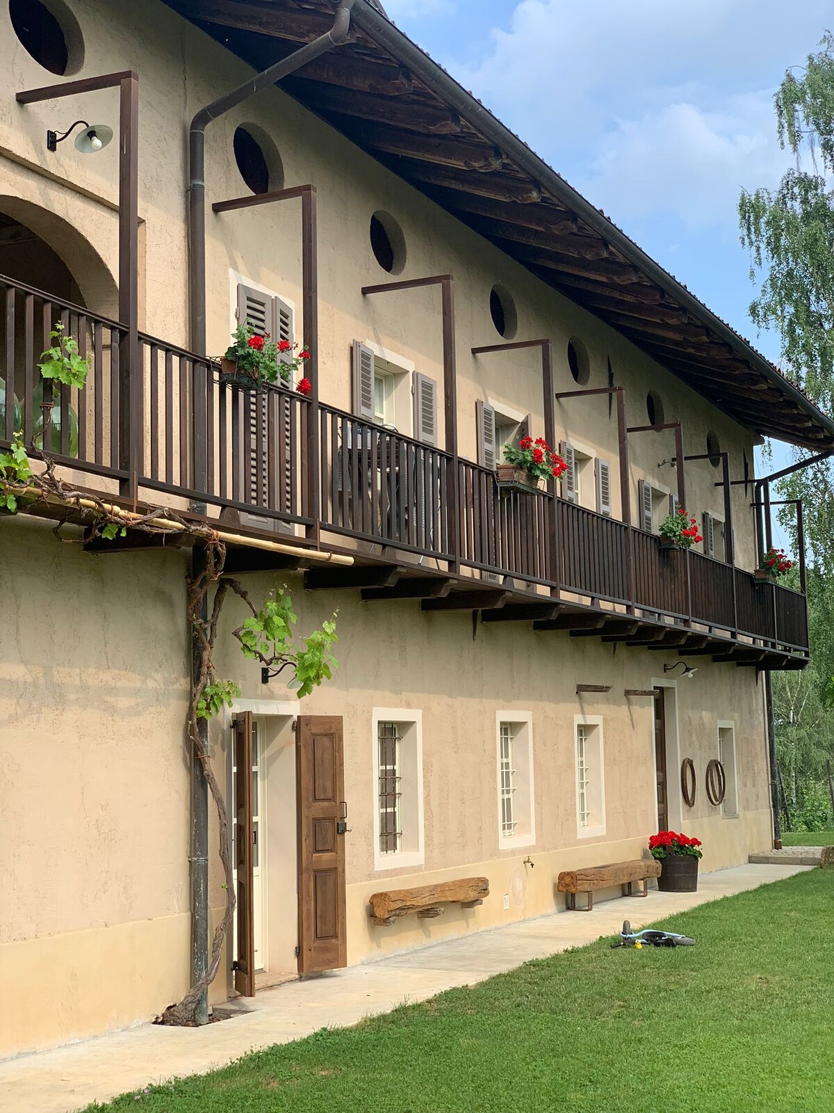 Our flat is located in a hamlet of the nearby village, just 8km from Biella. It is part of a renewed farmstead, right in the middle of woods and meadows. The flat is on the ground floor and has its own entrance (separated from the rest of the house). In front of the flat there is a courtyard, with a gazebo and barbecue, where our dog lives (she is very friendly). In the morning you might be awoken by the rooster and hens singing.