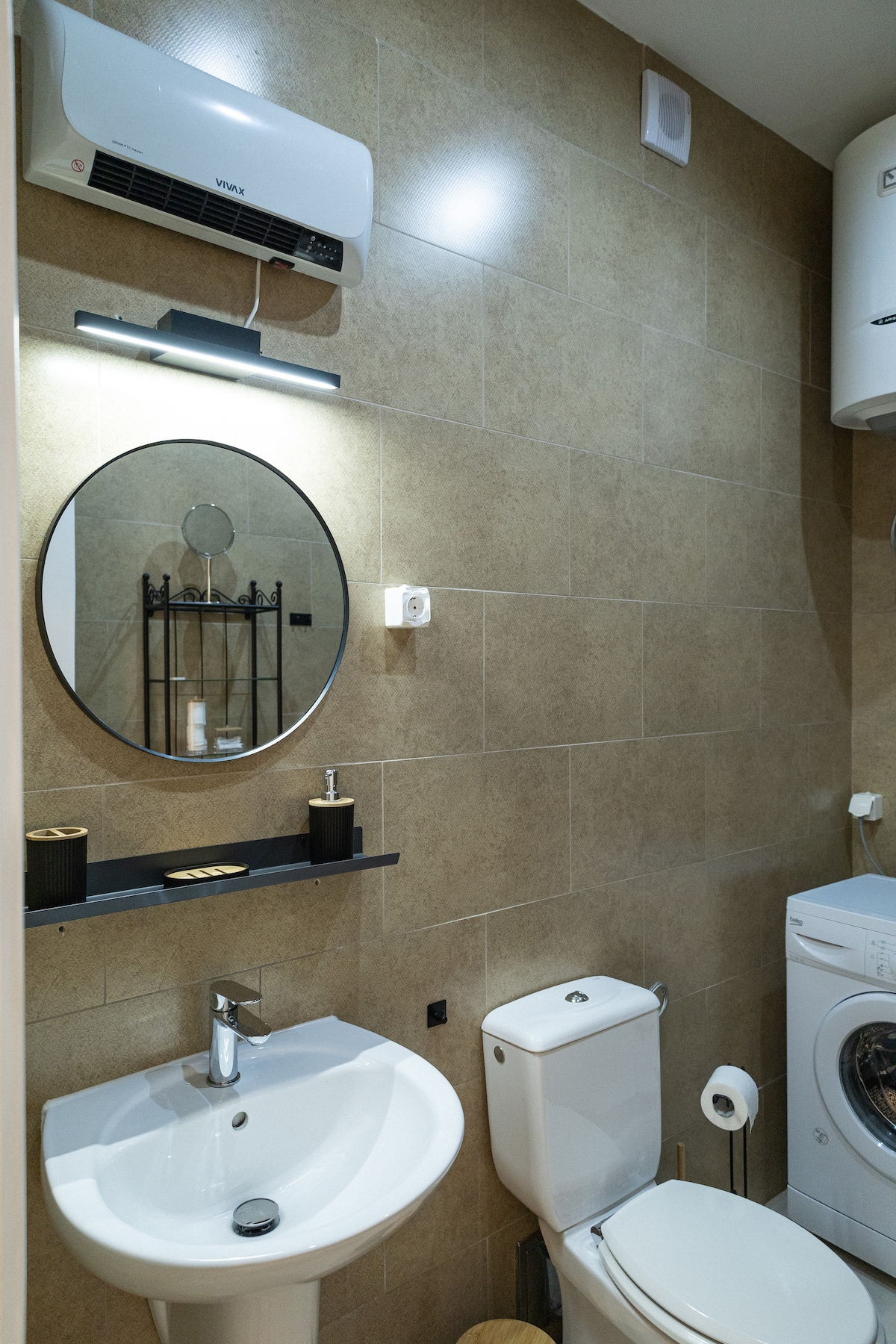 Apartament lluminós i espaiós situat darrere de l'estació principal d'autobusos al centre de Budva. L'apartament forma part d'un nou edifici residencial, és elegant i modern. A 10 minuts a peu de la costa del mar i a 10 minuts a peu del casc antic. A prop hi ha molts mini mercats i supermercats. Tens molts restaurants, llocs de menjar ràpid, tot el que necessites per gaudir d'una bona estada es troba a la zona del condomini. Internet és molt bo, 300/30 Mbps perfecte per a nòmades digitals i videollamades.