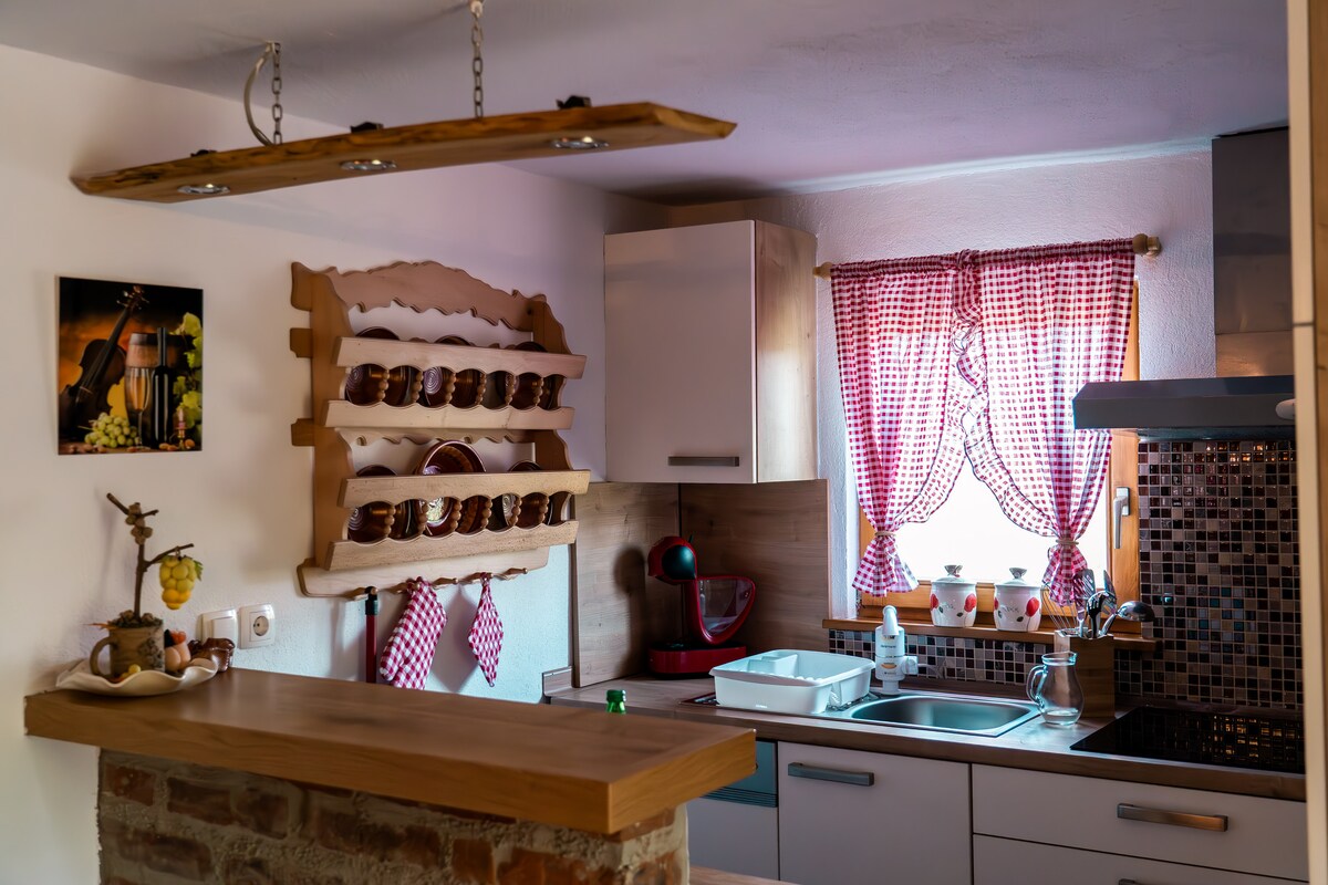 Un espai encantador, construït especialment per a la necessitat de pau i relaxació. Amb sauna. L'apartament està construït a terra, proporcionant una pau completa després d'un dia atrafegat, també adequat per a la curació després d'una malaltia o la neteja del cos i la ment. Estaràs sol a l'espai, sense altres residents ni sorolls externs. La casa té capacitat per a 4 hostes. L'interior és acollidor, minimalista i combina materials naturals amb la comoditat de la llar.